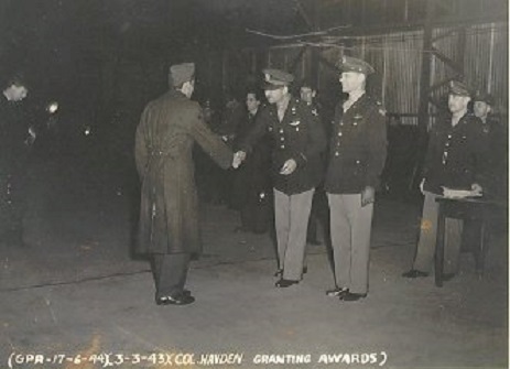 As pictured here, bending slightly while shaking hands at center, his duties included presenting Distinguished Service Cross medals to Air Force veterans for similar heroism in action. The B-24 heavy bomber in which Jack flew was considered a Liberator and nicknamed "Wise Guy." On the fateful day of Dec. 22, 1943, he undertook a mission to destroy railyards at Osnabrück, Germany. The plane was struck by enemy fire and anti-aircraft flak. Writing later, Capt. Henri Z. Lake, an intelligence officer, said that the Wise Guy "had several large bursts hit close by, and then took evasive action, which consisted chiefly of violent turns. This scattered the formation. [It] was last seen … as it passed under the formation." Unable to regain control, the Wise Guy crashed into the North Sea, west of the island of Texel, The Netherlands, with all hands lost. Word was telegraphed to Jack’s widow Theresa in Tampa, and his commanding officer sent a note saying that eyewitnesses thought that he might be "possibly safe somewhere, that his plane may have reached occupied territory," said one newspaper. Theresa held out hope that he would miraculously return home and kept his uniform neatly stowed away in a closet. But eventually Jack was declared killed in action and his remains considered "nonrecoverable." His name is inscribed on the Tablets of the Missing at Cambridge American Cemetery in England. A classified Missing Air Crew Report was prepared and remained so until declassified in 1973. He was the son of John "Harold" and Elsie "Mit" (Vilas) Hayden Sr.