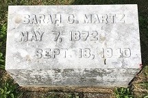 Her pastor, Rev. Rath, was a graduate of Muhlenberg College and Philadelphia Theological Seminar who had been pastor of the Solomon's Church in Macungie in 1881. He also had performed the weddings of Sarah's nephew Dr. Harvey Leon Snyder to Mary Ellen "Mamie" Bleam in 1891 and niece Mabel Violet Gaumer to Harold J. Ott in 1905. Sarah Ann became widowed a second time and and lived with her elderly father in 1900-1910. After her father's death, she went to dwell with her daughter Sadie Martz in East Macungie. On the late afternoon of Aug. 10, 1920, she went out to the garden to gather some potatoes. She suffered a stroke of apoplexy, fell on her back and died on the ground. Her body was found by a grandson, Henry Martz. Reported the Allentown Morning Call, she "had not complained of feeling ill, and only the day previous had taken a trip to Reading with her daughter." Funeral services were held in the Walbert home, followed by burial in Union Cemetery in East Macungie.