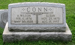 During the decade between 1900 and 1910, two more children were born into the family. The United States Census enumeration for the year 1910 shows the Conns continuing to reside next to Susan's parents in Lower Turkeyfoot, with Wilson's occupation considered by the census-taker as the operator of a "general farm." When the federal census again was made in 1920, the Conns remained on their Lower Turkeyfoot Township farm. Among their neighbors was Jennie (Hartzell) Firestone Burkholder, the widow of James Wesley Burkholder. In August 1926, when Susie's mother celebrated her 94th birthday, Susie and Wils organized a large picnic in her honor as a surprise party. It was held at the old homestead, and more than 225 relatives and friends attended. The Connellsville Daily Courier published a story about the event: Mrs. Mary Harbaugh was delightfully surprised Sunday when 225 guests assembled at the home of her son-in-law and daughter, Mr. and Mrs. A.W. Conn on the old Harbaugh homestead in Turkeyfoot Township to celebrate the ninety-fourth anniversary of her birth. The affair was in the form of a family reunion and will remembered as a very enjoyable occasion. The family which dates from Casper Harbaugh, who settled in Somerset county in 1732, has spread to many points. Five generations were represented at the reunion.... At noon a basket picnic dinner was served under the shady trees.... The following officers were elected for the ensuing year: President, Warren D. Younkin; secretary, Miss Lena Younkin; treasurer, Dr. J.R. Silvis of Greensburg. Other members of the family were present from Greensburg, Pittsburg, Rockwood, Star Junction, Addison, Charleroi, Somerfield and Johnstown.