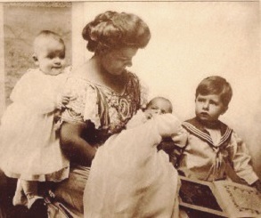 Circa 1901-1902, Harold studied at Cornell University, taking courses in mechanical engineering, but apparently the experience did not hold his interest. He discontinued his studies at or before the end of the spring term. Like the Haydens, Emily's Vilas family maintained an attractive summer residence on the St. Lawrence River, known as "Imperial Isle." Their engagement was announced in the New York Times on Aug. 31, 1902, as well as in the New York Evening Telegram and Rochester Democrat. Just a few days after the engagement announcement, the news about the Rafferty matter became public. But the controversy ultimately did not prevent the couple's' nuptials from taking place. Eight months later, on May 2, 1903, they were joined in matrimony in a "brilliant wedding" in Chicago's St. James Episcopal Church. In reporting on the happy event, said the Times, "Green and white was the color scheme, the combination being carried out in the church and house decorations, as well as in the costumes of the bridesmaids. The bridal party included Allen Hayden of New York, brother of the bridegroom, best man. Among the bridesmaids was Mabel Seaman of Brooklyn. N.Y.; and among the ushers was W.W. Wright of New York... The reception as the home of the bride's parents following the ceremony was a large one, several hundred guest having been asked." The Times added that the newlyweds would reside in Albany. They also maintained a home in late 1903 in New York City at Riverside Drive and 97th Street. The Rafferty matter continued to surface from time to time early in the Hayden marriage. Delorah amended her complaint in August 1903 in Watertown to say that Harold indeed had alienated her husband's affections, and was now seeking $25,000 in damages. The case finally went before the Supreme Court on Nov. 27, 1903. After some delay, it was settled in June 1904, with the Rafferty lawyers only saying to the press that "Hayden paid heavily." But Delorah was not yet finished, even as her husband left home and was away serving a three-year term in the Army, with a deployment to the Philippines. In August 1906, she sued her father-in-law for a cool $500,000 in damages. The father-in-law, who kept an apartment in the Waldorf Astoria Hotel, was quoted in the New York Evening World saying that "I shall never settle and so far as my boy is concerned he will have to continue to shift for himself, as he has since his marriage to this woman. I am done with him, and she will never get a penny of my money." That Evening World article included photographs of Delorah and her estranged husband. The case continued in February 1907 at a Special Term of the Supreme Court. It was finally thrown out of court in July 1908 when an old newspaper clipping was discovered showing that Delorah had compromised her legal position a few years earlier. ~ Harold and Elsie and Their Family of Three ~
