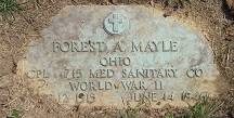 Stepson Forest A. Mayle (1915-1946) was born on Sept. 12, 1915 in Athens County. He served in the U.S. Armed Forces during World War II as a corporal and member of the 715th Medical Sanitary Company. Forest never married. He was employed as a coal miner with Black Diamond Coal in Athens County and made his residence in rural Sharpsburg, Athens County. Heartache struck the family when, on June 14, 1946, the 30-year-old Forest was shot and killed by a .22 cal. rifle wielded by Willard Edwin "Eddie" Norris in Bern Township. The interment of the remains took place in Mount Hermon. "No reason was ever given for the shooting," said the Athens Messenger. "Norris and Mayle, with other companions, had spent the evening together in the Tick Ridge area of eastern Athens County. Norris stopped at a friend's house to borrow a gun on the pretext of going ground hog hunting, then returned to the car and shot Mayle who was standing beside the vehicle." (The 5 a.m. incident is believed to have occurred at the home of cousins Jesse and Ivy [Minerd] Fischer.) "Throughout his trial Norris declined to give a reason for his action." Norris was found guilty of murder and spent more than two decades in prison before his sentence was commuted by Ohio Gov. James Rhodes.