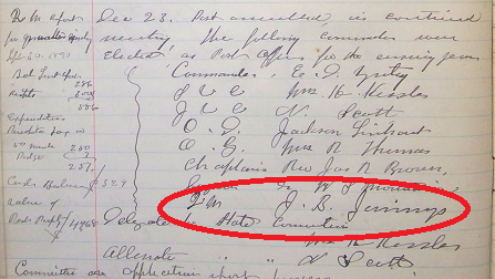 Jerome served in 1880 as the Ursina Borough delegate on the Republican County Committee. As burgess of Ursina, Jerome was faced with a number of important issues, concerns and improvements. In August 1888, borough authorities approved a new ordinance and published a legal notice in the Somerset Herald: "No cow or other horned cattle shall be permitted to run at large within the limits of Ursina Borough between the hours of 8 p.m. and 5½ a.m. during the months of May, June, July, August, September and October. Any owner of such animals, or having them in charge, so offending, shall pay a fine or not exceeding one dollar and costs." Jerome and many old Civil War veterans were involved in forming the Ross Rush Post of the Grand Army of the Republic in Ursina, a branch of a national organization which promoted veteran pensions, elections of Republican candidates and other issues. Just a few days before Christmas 1890, he was elected quartermaster of the Rush Post, with his name duly inscribed in the minute book. Today the Rush Post ledgers have been preserved and digitized by the Sons of Union Veterans of the Civil War, Mt. Union Church Camp #502.
