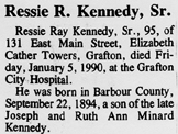 Ressie "Ray" Kennedy Sr. was born on Sept. 22, 1894 in the Webster community of near Grafton, Taylor County, WV, the son of Josiah and Ruth Ann (Minerd) Kennedy Sr. He stood 5 feet, 8 inches tall, and weighed 150 lbs. He had eyes and hair of brown. Circa 1910, when the census was taken, Ray made his home with his married brother John Henry Kennedy in Knottsville, Taylor County, and worked as a laborer on the home farm.