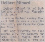 When during World War II he again registered for the draft, at age 64, he resided in Knottsville, Taylor County and named his sister Icy Kennedy as his next of kin. On the draft card, his name was spelled "Minerd" and he was marked as "white." Delbert passed away at his home on April 17, 1969, at the age of 91, and was laid to eternal rest in the Welch Cemetery near Philippi. Funeral services were led by his nephew, Rev. Isaac "Brother Ike" Kennedy, and his obituary was published in the Barbour Democrat and Fairmont Times newspapers. Delbert's grave marker was marked with flowers when photographed by the founder of this website in the late summer of 2004.