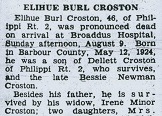 Said the Barbour Democrat newspaper, "Mrs. Newman was a homemaker and a Methodist by faith." The federal census enumeration of 1940 shows the family in Philippi, with John working as a laborer on road construction projects. In 1974, John is known to have purchased 7,200 sq. ft. of real estate along Anglin's Run in Philippi from Ralph Gum. Mildred passed away at the age of 71, in Broaddus Hospital, on Feb. 10, 1980. At her death, she was survived by her husband, nine children, 43 grandchildren and nine great-grandchildren. Following the funeral, led by Rev. Dr. J. Frank Peoples of the Peoples Chapel Church of Chestnut Ridge, she was laid to rest in the Welch Cemetery. John survived her by about a year. Death spirited him away into the heavenly host on Feb. 4, 1981. Rev. Peoples also conducted his funeral. A decade or more later, when Rev. Peoples published his autobiography The Bright Side of the Mountain, he included John's name in a list of "Funerals Preached in Barbour County." His real estate was sold to his daughters Emma Jane Mayle and Barbara Ellen Newman. This land eventually was seized by the State of West Virginia in an eminent domain matter, considered a "total take - noncontrolled access right of way," as part of a proposed Philippi Bypass highway. (Project U301-250-16.58, Parcel 12). Daughter Rosabell Newman (1930-1996) was born on Aug. 23, 1930 in Philippi. In 1948, at the age of 18, she was joined in marital union with 38-year-old Esker Croston (Oct. 28, 1909-1961), son of Walter and Lucinda (Newman) Croston of Philippi. Officiating was Rev. M.C. Harris of the African Methodist Church. The groom was 21 years older than the bride and because the bride was underage, her parents had to give their consent. Esker stood 5 feet, 11 inches and weighed 140 lbs. They were the parents of five children, among them Ann Scarlet Johnson, Richard Croston, David Croston, Freda Croston and Diana Simon. Esker received a grammar school education. During World War II, Esker served in the U.S. Army and was assigned to the Headquarters Battery of the 173rd FA Battalion. He received his honorable discharge on Nov. 17, 1945. They earned income over the years as farmers. At the death of Esker's father, he inherited 65 acres of land. Sadly, Esker passed away on April 23, 1961. An examining physician ruled the death due to "natural causes." Rev. Dr. J. Franklin Peoples, of the Methodist Church on Chestnut Ridge, officiated the funeral rites. Rosabell outlived him by 35 years. She died on May 5, 1996, at the age of 65. Burial was in Welch Cemetery. When Rev. Peoples later published his autobiography The Bright Side of the Mountain, he included Exker's name in a list of "Funerals Preached in Barbour County."