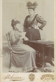 During the decade of the 1890s, Rebecca and Nathaniel migrated north to Minnesota, settling near Minneapolis. Many family portraits of the Behmes were taken there. Later still, they moved directly south to Iowa. Seen here is a photo of Rebecca with a man thought to be Nathaniel -- if so, the only known portrait of them together -- produced at the Stahmann Studio in Wabasha, MN. It is not dated, and his identity is not confirmed. Heartache rocked the family in 1896, when Rebecca's son Tommy died in Tontogany. She was not with him at the time, and wrote later that she regretted that she had been unable to "come to see my dear boy when he was on his death bed." The guilt haunted her for the rest of her life. In later years, when she was several thousand miles away on the West Coast, she wrote: "My heart aches to come home & see you all & my dear old father & the graves of my dear boy & my mother." Three years after Tommy's death, she wrote to her sister, asking for the address of Tommy's widow, saying "I want to write to her in regards to Tomie. I have something I want to ask her. Please do not forget it & write soon."
