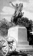 Daniel enlisted in Company C of the 27th Ohio Infantry on July 18, 1861. He was 25 years of age at the time. He served under Capt. Nichols. He was about the same age as another young man who grew up in Somerset and later went on to great fame in the Civil War -- General Philip Henry "Little Phil" Sheridan -- whose portrait is seen here. Sheridan, four years older than Daniel, is said to have "carried water for the workmen and afterwards drove a cart in the construction of the Zanesville and Maysville pike, the line of which passed through the town of his boyhood home and on which has father had a contract." In 1905, a statue of Sheridan on horseback was unveiled in the square in the center of Somerset, and stands there today. After serving for seven months, Daniel was discharged at 4th Street Hospital in St. Louis, Missouri, in January 1862, due to disability from a buildup of fluids. Returning