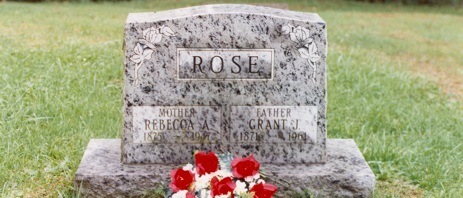 On Sept. 23, 1945, the Roses celebrated their 50th wedding anniversary. Many of their children, grandchildren, nieces, nephews and friends attended the party where refreshments were served. Son John "offered a prayer for the aged couple," reported the local newspaper in a lengthy article. Among the many attendees was a second cousin, Charles "Red" Minor, of Connellsville, PA. Rebecca endured diabetes for many years. The illness took its toll during her final two years of life. Sadly, she died on June 2, 1947 at home at the age of 72. Rev. George H. Coffman, pastor of the Church of God, officiated at her funeral service. She was laid to rest at the Jersey Church near Ursina. An obituary in the Meyersdale Republican not only named her children but also her surviving siblings -- Ellen Faidley of Connellsville, Lydia Shearer of South Dakota and Ira Cunningham of Dawson, Fayette County. Grant outlived his wife by 14 years, and lived to the age of 90. During that time, he contracted a cancerous sigmoid in his colon. On Sept. 25, 1961, he died in the Somerset Community Hospital. Following funeral services led by Rev. Vernon Witt, he was buried at the Jersey Church. An obituary was published in the Somerset Daily American. At the time of Grant's death, the Daily American reported that he and Rebecca had produced 24 grandchildren, 65 great- grandchildren and two great-great grandchildren. The Roses are mentioned in the booklets Reflections: Ursina 1787-1994 and Draketown Past & Present.