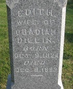 Edith (Welker) Dillon was born on Oct. 9, 1824 in Union Township, Knox County, the daughter of John and Elizabeth (Gaumer) Welker Sr. When she was 22 years of age, in 1846, she married 21-year-old Obadiah Dillon (1825- ? ), his first name also spelled "Obediah," and his late name alternatively "Dillin." The marriage took place in Knox County by the hand of the bride's brother, justice of the peace John Welker Jr. He was the son of Isaiah and Mary Jane (Hall) Dillin of Millwood, Knox County. The couple produced at least five offspring -- Mary A. Dillon, Lucinda F. Dillon, Winfield (or "Stanfield") Dillon, Charles Roland Dillon and Lulu G. Dillon.