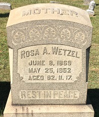 Son Charles C. Wetzel (1844-1925) was born on Feb. 3, 1844 in Berks County. He was united in holy matrimony with Elizabeth Moll (June 4, 1842-1914), daughter of Christopher and Susan (Repp) Moll. The Wetzels were the parents of Rosa Schmoyer, Oscar Wetzel, Mary M. Stengel, Lillie S. Dierolf, Sallie Anna Beitler and Henry "Ellsworth" Wetzel. They belonged to the Reformed congregation of the Longswamp Church, and Charles belonged to the Washington Camp of the Patriotic Order of the Sons of America of Siesholtzville. Charles was a longtime shoemaker, retiring in 1913. Their home for many years was along the road between Siesholtzville and Hsingersville. In the spring of 1914, Elizabeth suffered a cerebral hemorrhage, and the couple moved into the home of their son Oscar in Alburtis/Lehigh Church. Elizabeth lingered for three months until she had another stroke and death swept her away at home on May 20, 1914. Rev. W.L. Meckstroh preached the funeral sermon, with interment was in Longswamp Church Cemetery. In addition to her children, the Allentown Morning Call reported in an obituary that she was survived by sisters Mrs. David Rauch, Mrs. Abraham Heydt and Mrs. Albert Snyder. As a widower, Charles continued to dwell with their son Oscar. Diagnosed with heart valve disease, Charles fell over suddenly while seated at the breakfast table at the age of 81 on Sept. 22, 1925. Dr. E.H. Mohr of Alburtis was called, but Charles was pronounced dead. His remains were lowered into rest in Longswamp Cemetery following funeral services conducted by Rev. W.L. Meckstroth. Son Oscar signed the Pennsylvania certificate of death. An obituary in the Allentown Morning Call noted that his survivors included 38 grandchildren and 35 great-grandchildren. Those who provided flowers for the funeral included a spray of carnations representing Charles' age at death, from daughter Lillie and family; a spray of astors from son Ellsworth and family; a gasket of gladiolas from the Stengels and Mr. and Mrs. Fred Conrad; palms and carnations from grandson William and his wife; a spray of lilies from his sister Amanda Rothenberger; a spray of chrysanthemums from Mr. and Mrs. Charles Schmoyer; a basket of gladioli from Roy Stengel and Thomas Richard and family; a spray of carnations and lilies from neighbors on East Second Street; a basket of mixed flowers from Wetzel grandchildren; a basket of dahlias from great-grandchildren Arline, Verna and Alton; and a hand bouquet from grandsons Raymond and Lloyd. Son Oscar and his wife provided a slumber robe. Daughter Rosa Wetzel (1867-1916) was born on Feb. 27, 1867. She was joined in matrimony with Horatio Schmoyer (Feb. 5, 1861-1934), son of David and Eliza (Dankel) Schmoyer. The couple bore these known children, Charles Schmoyer, Clarence Schmoyer, Wilson Schmoyer, Mrs. W.L. Mauer, Mrs. Clarence Hauser, Mrs. Robert Moll, Mrs. Herbert Lichtenwalner, Mrs. Howard Roth and Norman W. Schmoyer. Sadness blanketed the family on May 2, 1907 when four-year-old son Norman, stricken with diphtheria, passed away, with his tender remains placed into rest in Longswamp Church Cemetery. Horatio worked at his trade of carpentry and cabinet-making over the years. Said the Allentown Morning Call, "He was employed by furniture factories in Allentown for many years, his last position being with the Yeager company." They belonged to the Reformed congregation of the Longswamp Church, and Horatio was a member of the Fraternal Patriotic Americans of Alburtis. Their residence in 1914 was in Alburtis. Death cleaved apart the marriage on May 20, 1916 when the 49-year-old Rosa died suddenly of acute heart problems. She had spent the day driving in an automobile with her sister. Said the Allentown Democrat, "when they got to Beinigsville she complained of not feeling well. The machine was turned around and started home, but Mrs. Schmoyer died before medical aid could be gotten. Burial was in Longswamp Church Cemetery. After a period of grieving, Horatio married a second time to widow Matilda (Schiffert) Dreas ( ? -1952), widow of Alvin Dreas and daughter of Elias and Amilie (Klotz) Schiffert. Their union lasted for about 17 years until his demise on June 19, 1934. Funeral services were held in the home of his daughter Mrs. Maurer in Red Lion, with burial in Longswamp Church Cemetery. An obituary in the Morning Call gave the count of his survivors as 21 grandchildren and eight great-grandchildren. Son Oscar Wetzel (1868-1942) was born on June 28, 1868 in Longswamp Township, Berks County. He was joined in holy marriage with Annie Reppert ( ? -1932?). The couple were the parents of a baker's dozen of children -- William Wetzel, Herbert Wetzel, George Wetzel, Alvin Wetzel, Clinton Wetzel, Milton Wetzel, Lloyd Wetzel, Raymond Wetzel, Mrs. Clarence Scherer, Mrs. Morris Long, Mabel Wetzel, Mrs Claude Rauch and a daughter who died young. Said the Allentown Morning Call, "For many years he was a farmer and then became a carpenter and woodworker in the Topton Furniture Co. Later he conducted the Keystone hotel in Alburtis but retired about [1938]." They lived in Lehigh Church in 1914 and then in about 1918 moved to Alburtis, Lehigh County. They were members of the Zion Lehigh Church's Reformed congregation. Sadly, Annie died in about 1932. Oscar lived for another decade in his home on West Second Street. At the age of 73, suffering from chronic kidney problems, he passed away at home on March 8, 1942. Burial was in the Zion Lehigh Church Cemetery, with Rev. William O. Wolford officiating at funeral services held in the home of son Herbert in Alburtis. An obituary in the Morning Call gave the count of his grandchildren at 37 and great-grandchildren as 10.