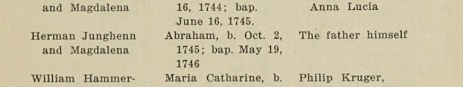Abraham Youngken Sr. (1745-1790) -- originally "Junghenn" -- was born on Oct. 2, 1745 in Tinicum Township, Bucks County, PA, the son of German immigrants Johann "Herman" and Magdalena Youngken. At the age of seven-and-a-alf months, baby Abraham was baptized on May 19, 1746 at the Tohickon Reformed Church, by the hand of Rev. John "Conrad" Würze, also spelled "Wirtz" and "Wurts," with the father standing as his son's witness, an unusual practice.