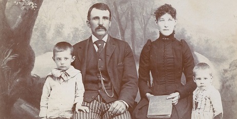 Daughter Minnie Frances Younkin (1863-1950) was born on July 18, 1863 near Ursina, Somerset County. At the age of 19, she married 33-year-old Uriah F. Myers (Nov. 4, 1852-1933) in Perryopolis, Fayette County, PA, the son of Henry A. and Mary (Faidley) Myers. Their marriage notice was published in the Somerset Herald: "MEYERS-YOUNKIN. – On Thursday, February 19, 1885, by Rev. H. Stone, Mr. Urias Meyers, of Milford, Kansas, to Miss Minnie F. Younkin, of Ursina, Pa." Over the years their name also was spelled as "Myers." Their six children were George Earl Myers, Lula Fern Myers, Mary Ella Hudson, Alice Vivian Hudson, Hazel Elnora Dozier and Mildred Frances Anthony. The newlyweds are believed to immediately have established a home in Kansas, where Uriah had already settled. The eldest five of their six children were born in the town of Geary, KS. After their two eldest children were born, the Myerses had a family portrait photograph taken at Hopkins & Pennel Studio in Junction City, KS. In 1906, they relocated from their residence in Broken Arrow, Creek Nation, Indian Territory to Missouri. There, they settled for good on a farm near New Bloomfield, Cedar Township, Callaway County. When the federal census was enumerated in 1930, Minnie and Uriah lived alone in that locale, with him retired and marked as having no occupation. Uriah was burdened with hardening of the arteries. He died in New Bloomfield, at the age of 80, on Feb. 25, 1933. He was buried at the Hopewell Baptist Church Cemetery.