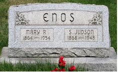 Son Samuel "Judson" Enos (1868-1948) was born in about 1868. He resided in Confluence for decades. At some point, as a young man, he and his brother Herman Enos worked together for the Laurel Hill Lumber Company. The company operated a railroad along Cranberry Glade Run, Sandy Run and "Kutztown" -- an interchange with the Ursina and North Fork Railway -- to transport wood timbered from the Somerset/Fayette County border. The brothers rode on this rail line are named in the booklet "Stemwinders" in the Laurel Highlands, authored by Benjamin F.G. Kline Jr., part of the series Logging Railroad Era of Lumbering in Pennsylvania. The brothers were burned in the railroad's worst accident when the weight of the locomotive caused a weak bridge over the Laurel Hill Creek to collapse. Then in 1904, at the age of 35, Samuel was a bartender at the Hotel Humbert. Samuel married a cousin, Mary "Mollie" Rush (1864-1954), daughter of Jacob J. and Sarah (Dull) Rush, granddaughter of Frederick and Margaret "Peggy" (Faidley) Dull and great-granddaughter of George and Christina (Younkin) Dull of Somerset County. They had four known children, Walton Enos, John R. Enos, Harry Ray Enos and Eva Nell Fike. The family were members of the Church of God in Confluence. At the age of 70, Samuel passed away at home, on Jan. 25, 1948. An obituary in the Daily Courier said he was survived by seven grandchildren and one great-grandchild. Following a funeral service led by Rev. George Coffman, of the Church of God, he was laid to rest in the Jersey Church Cemetery. Among those from out of town who attended the funeral, said the Meyersdale Republican, were Mr. and Mrs. Merle Parnell, Mr. and Mrs. Ray Barron of Rockwood; and Lemon Hayes and children Dorsey, Jane and William of Scottdale. Mary outlived her husband by six years. She went to live with her married daughter Mrs. Fike in Somerset. She died in the Fike home at the age of 89 on Jan. 28, 1954. In addition to her children, the Daily Courier noted that her surviving siblings were Mrs. H.L. Sellers, Scott Rush, Mrs. J.B. Crow, Mrs. F.M. Parnell and Ann Kutz.