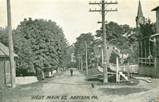Emma [Ogle] Newingham). Right: A postcard dated 1911 showing West Main Street in Addison, Somerset County, which was a toll stop